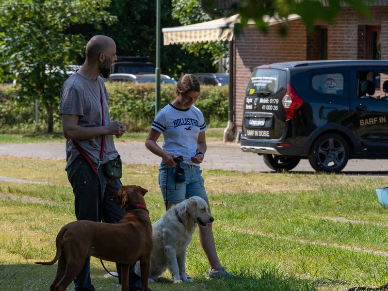 „Mein Hund muss nichts können, er muss nur kommen, wenn ich ihn rufe!“ Dies ist einer der wohl meist ausgesprochenen Kunden-wünsche. Ganz so einfach ist es jedoch leider nicht. Zu einem sicheren Rückruf gehört mehr, als nur der feste Wille. In diesem Kurs werden wir dir zeigen, welche Schritte notwendig sind, um einen sicheren Rückruf zu gewährleisten. Wir arbeiten Einzeln und in Kleingruppen an diesem großen Ziel. Umfangreiche Arbeits-blätter und Handouts für Zuhause sorgen dafür, dass du dir die Kursinhalte noch einmal vor Augen führen kannst, denn unser großes Ziel ist, dass du dich rundum gut betreut fühlst.